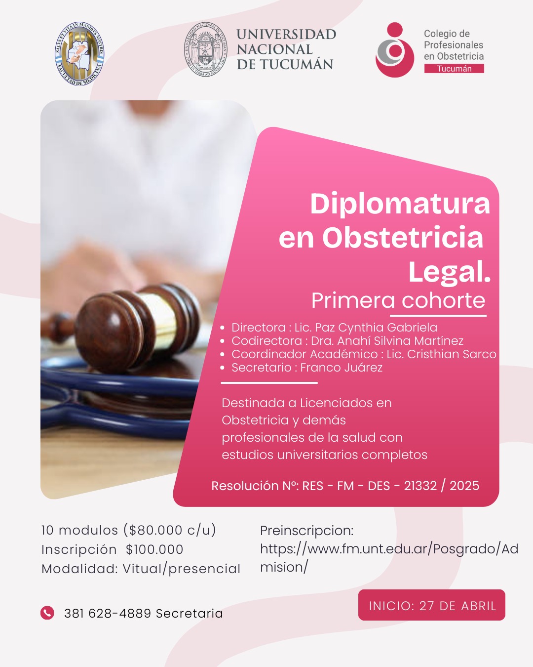Secretaría de Posgrado - Facultad de Medicina. - Lunes a viernes de 08:00 a 12:00